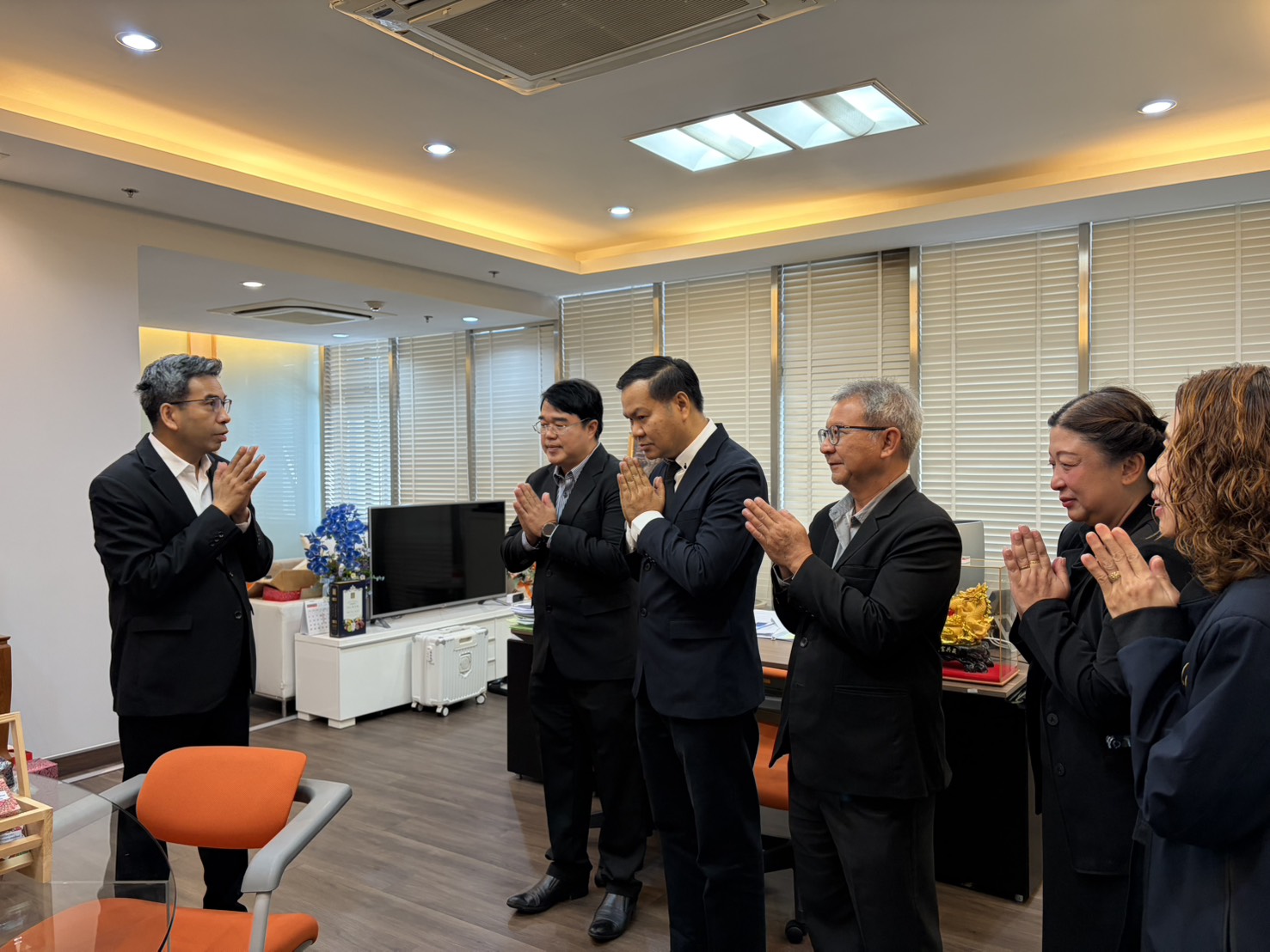 นายสุริยา วงทะนี รักษาการในตำแหน่งผู้อำนวยการองค์การสุรา พร้อมด้วยคณะ ผู้บริหาร เข้าร่วมอวยพรและขอพรเนื่องในโอกาสวันขึ้นปีใหม่ พ.ศ. 2569 จาก ดร.พรชัย ฐีระเวช อธิบดีกรมสรรพสามิต ว่าที่ร้อยตรี ยงยุทธ ภูมิประเทศ ที่ปรึกษาด้านยุทธศาสตร์ภาษีสรรพสามิต ว่าที่ร้อยตรี ประยุทธ เสตถาภิรมย์ ดร.นิตยา โสรีกุล นายภาณุพงศ์ ศรีเกตุ และนางสาวรัชฎา วานิชกร รองอธิบดีกรมสรรพสามิต ณ กรมสรรพสามิต เมื่อวันที่ 8 มกราคม 2569