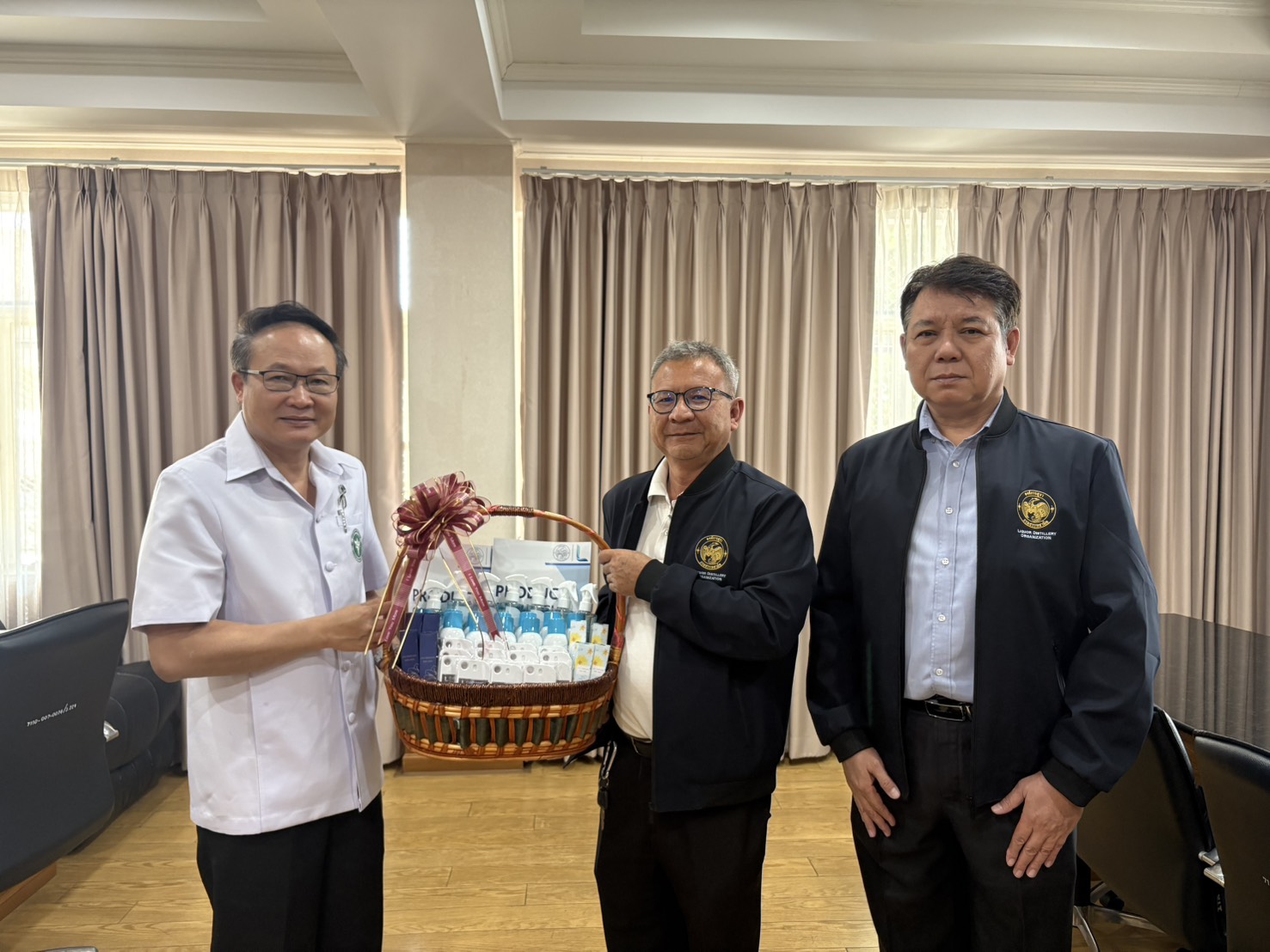 นายธเนศ เอิบอิ่มฤทธิ ผู้ช่วยผู้อำนวยการฝ่ายผลิต ผู้แทนผู้อำนวยการองค์การสุรา นำคณะผู้บริหารองค์การสุราฯ เข้าพบ นายปรีดา วรหาร นายแพทย์สาธารณสุขจังหวัดฉะเชิงเทรา และคณะผู้บริหาร เพื่อร่วมอวยพรและขอพรเนื่องในโอกาสวันขึ้นปีใหม่ พ.ศ. 2569 ณ สำนักงานสาธารณสุขจังหวัดฉะเชิงเทรา เมื่อวันที่ 27 มกราคม 2569