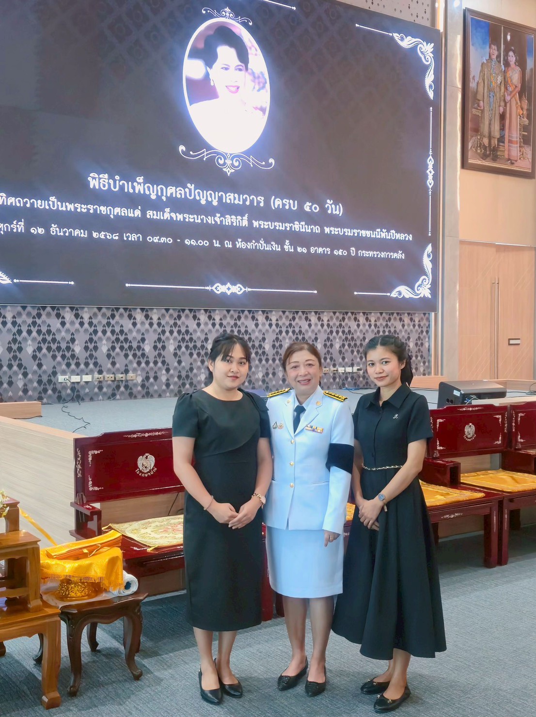 นางสาวอัญญารินทร์ หัสถาทัย ผู้ช่วยผู้อำนวยการฝ่ายบริหาร ผู้แทนผู้อำนวยการองค์การสุรา พร้อมด้วยพนักงานองค์การสุรา ร่วมพิธีบำเพ็ญกุศลปัญญาสมวาร (ครบ 50 วัน) อุทิศถวายเป็นพระราชกุศลแด่สมเด็จพระนางเจ้าสิริกิติ์ พระบรมราชินีนาถ พระบรมราชชนนีพันปีหลวง เพื่อแสดงความจงรักภักดีและสำนึกในพระมหากรุณาธิคุณอย่างหาที่สุดมิได้ โดยมี นายเอกนิติ นิติทัณฑ์ประภาศ รองนายกรัฐมนตรีและรัฐมนตรีว่าการกระทรวงการคลัง ให้เกียรติเป็นประธานในพิธี ณ บริเวณชั้น 21 อาคาร 150 ปี กระทรวงการคลัง เมื่อวันที่ 12 ธันวาคม 2568