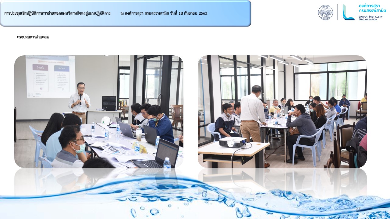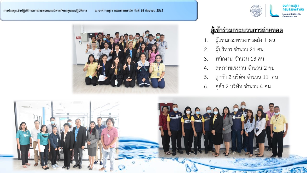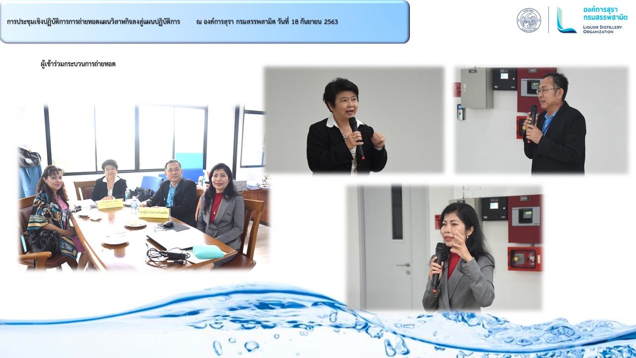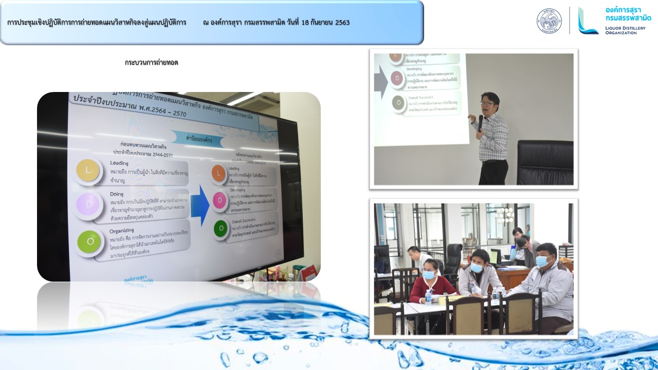 องค์การสุรา กรมสรรพสามิต ได้จัดประชุมการถ่ายทอดแผนวิสาหกิจ และแผนปฏิบัติการองค์การสุรา กรมสรรพสามิต ประจำปีงบประมาณ 2564 - 2570 เมื่อวันที่ 18 กันยายน 2563 โดยมีผู้เข้าร่วมกระบวนการถ่ายทอดได้แก่